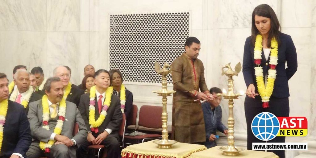 அமெரிக்க நாடாளுமன்றத்தில் இன்று நடந்த தீபாவளி கொண்டாட்டத்தில் இந்தியாவை பூர்வீகமாக உடைய எம்.பி.,க்களுடன் அமெரிக்க எம்.பி.,க்களும் உற்சாகத்துடன் பங்கேற்றனர். இன்டியாஸ்போரா அமைப்பின் நிறுவனர் எம்.ஆர். ரங்கசாமி, இந்தியாவை பூர்வீக மாக உடைய எம்.பி.,க்களான டாக்டர் அமி பேரா, பிரமிளா ஜெயபால், ராஜா கிருஷ்ணமூர்த்தி உள்ளிட்டோர் இதில் பங்கேற்றனர். அதிபர் ஜோ பைடன் நிர்வாகத்தில் உயர் பதவியில் உள்ள இந்தியாவை பூர்வீகமாக உடைய நீரா டான்டன், விவேக் மூர்த்தி உள்ளிட்டோரும் பங்கேற்றனர். அமெரிக்க பெண் எம்.பி.,யான கரோலின் மலோனியும் பங்கேற்றார். இவருடைய முயற்சியால் 2016ல் தீபாவளி குறித்த சிறப்பு தபால் தலை வெளியிடப்பட்டது. ”தீபங்களின் பண்டிகையான தீபாவளியை மேலும் சிறப்பிக்கும் வகையில், பொது விடுமுறை அறிவிக்க நடவடிக்கை எடுக்கப்படும்,” என அவர் குறிப்பிட்டார்.