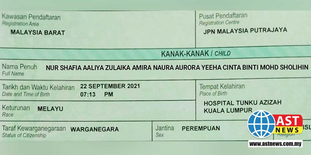 Princess Aura Nurr Ermily Amara Auliya Bidadari Nawal El Zendra binti Mohd Suffian என்னும் பெயர்தான் மலேசியாவின் மிக நீளமான பெயராக பதிவு செய்யப்பட்டுள்ளது என்று தேசிய பதிவுத் துறை தகவல் வெளியிட்டுள்ளது. ஆனால் முகமட் ஷோலிஹின் என்பவர் Nur Shafia Aaliya Zulaika Amira Naura Aurora Yeeha Cinta binti Mohd Sholihin என்னும் தன் மகளின் பெயர்தான் நீளமானது என்றும் தனிச் சிறப்புடையதென்றும் வளைதளத்தில் பதிவிட்ட நிலையில், இது குறித்து சலசலப்பான பதிவுகள் சமூக ஊடகங்களில் கடந்த இரு நாட்களாக பதிவாயின. இந்த நிலையில்தான், தேசிய பதிவுத் துறை மலேசியாவின் நீளமான பெயர் எதுவென்றும் குட்டையான பெயர் எதுவென்றும் தெரிவித்துள்ளது.