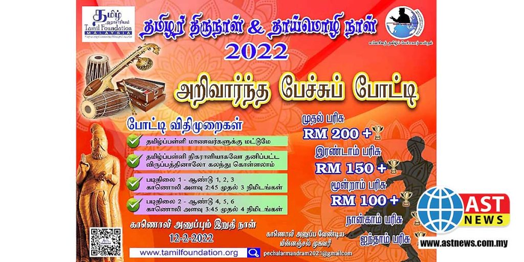 வரும் பிப்ரவரி 27 ஆம் தேதி 27/02/2022 – ஆம் தேதி தமிழர் திருநாள் மற்றும் தாய்மொழிக் கொண்டாட்டம் நடைபெற உள்ளது. மலேசியத் தமிழ் அறவாரியம், மலாயாப் பல்கலைக்கழக இந்திய ஆய்வியல் துறை, மொழி, மொழியியல் புலத் தமிழ்ப் பிரிவு, தமிழ்மொழிக் காப்பகம், தேசியத் தமிழ்ப்பள்ளி தலைமையாசிரியர் மன்றம், சிலாங்கூர் மாநிலத் தமிழ்ப்பள்ளித் தலைமையாசிரியர் மன்றம், மலேசியத் தமிழ்ப் பேச்சாளர் மன்றம், மலேசிய அறிவகம், பகாங் மாநில இடைநிலைப்பள்ளித் தமிழாசிரியர் கழகம், தமிழ் அறம் ஆகிய இயக்கங்களுடன் இணைந்து கொண்டாடப்படுகிறது. அதனையொட்டி, பல போட்டிகள் நடத்த ஏற்பாடு செய்யப்பட்டுள்ளது.