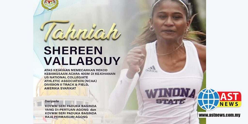 அமெரிக்க தடகள ஓட்டத்தில் சாதனை புரிந்து மலேசியாவிற்கு பெருமை சேர்த்துளள்ள வீராங்கனை ஷெரினுக்கு மாட்சிமைக்குரிய மாமன்னர் சுல்தான் அப்துல்லா ரியாத்துடின் சுல்தான் அகமட் பில்லா ஷா-பேரரசியார் துங்கு ஹஜ்ஜா அசீசா அமீனா மைமுனா இஸ்கந்தரியா தம்பதியர் வாழ்த்து தெரிவித்துள்ளனர். ஒரு தடகள பந்தயக்காரர் குடும்பத்தில் பிறந்த ஷெரீன் வல்லபோய், கடந்த சனிக்கிழமை படைத்த சாதனை அபாரமானது; 2021-22 அமெரிக்க தேசிய கல்லூரி தடகள சங்கம்-NCAAஇன் பிரிவு II, பெண்களுக்கான 400 மீட்டர் தடகள ஓட்டப் போட்டியில் 300 அணிகளும் தனிப்பட்ட முறையில் 1,000க்கும் மேற்பட்ட வீராங்கனைகளும் பங்கு பெற்றனர். இதில் கலந்து கொண்ட ஷெரின், முதல் இடத்தைப் பிடித்தார். 23 வயதான ஷெரின், 400 மீட்டர் தூரத்தை 54 வினாடிகளில் கடந்து, இத்தகைய சாதனையைப் படைத்த முதல் மலேசிய வீராங்கனை என்ற பெருமையை தட்டிச் சென்றுள்ளார். முன்னதாக, Noraseela Mohd Khalid என்ற வீராங்கனை இதே 400 மீட்டர் தடகள ஓட்டத்தை 54.58 வினாடிகளில் ஓடி முடித்தது மலேசிய சாதனையாக இருந்தது. 2006-இல் Noraseela படைத்த சாதனையை இப்போது ஷெரின் முறியடித்துள்ளார்.