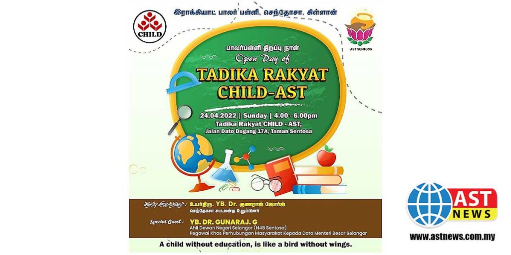 Klang, Taman Sentosa, Jalan Dato Dagang 17A-என்னும் இடத்தில் அமைந்துள்ள ஏஎஸ்டி மக்கள் பாலர் பள்ளி வளாகத்தில் நடைபெறவுள்ள இந்த நிகழ்ச்சியில் அனைவரும் கலந்து கொள்ளும்படி செந்தோசா மக்கள் சேவை மையத்தின் சார்பில் அழைக்கப்படுகின்றனர்.