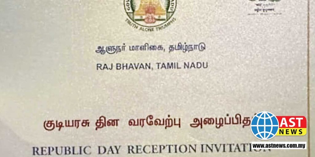 கிண்டி கவர்னர் மாளிகையில் வருகிற 26-ந்தேதி மாலை 4.30 மணிக்கு நடைபெறும் குடியரசு தின வரவேற்பு விழாவுக்காக அச்சடிக்கப்பட்டுள்ள அழைப்பிதழில் தமிழ்நாடு ஆளுநர் என்றும் திருவள்ளுவர் ஆண்டு தைத்திங்கள் என்றும் தமிழக அரசு இலட்சினையும் (முத்திரை) அழகாக குறிப்பிடப்பட்டுள்ளது.