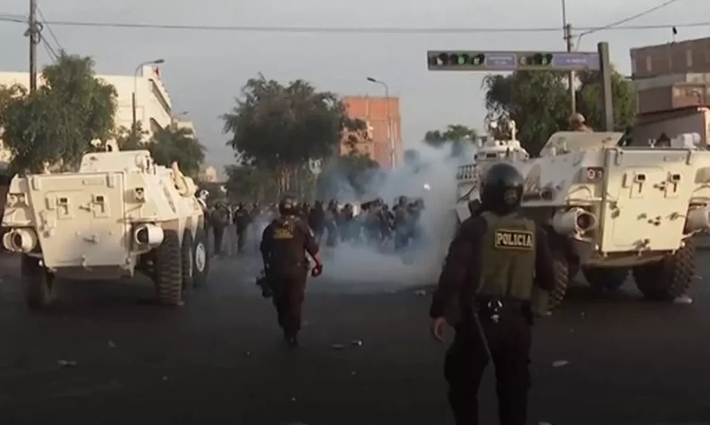 லிமாவில் நடைபெற்ற ஆர்ப்பாட்டத்தின்போது போராட்டக்காரர்கள், போலீசார் இடையே பெரும் மோதல் வெடித்தது. காவல் துறையினர் கண்ணீர்ப் புகை குண்டுகளை வீசி ஆர்ப்பாட்டக்காரர்களைக் கலைக்க முற்பட்டதால் அங்கு பரபரப்பு நிலவியது.