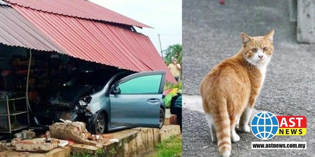 சாலையை கடக்க முயன்ற பூனையைத் தவிர்க்க முயன்ற மைவி கார் விபத்துக்குள்ளாகி கடையில் புகுந்ததால், இரு நண்பர்கள் பதற்றமான சூழலை எதிர்கொள்ள நேரிட்டது.