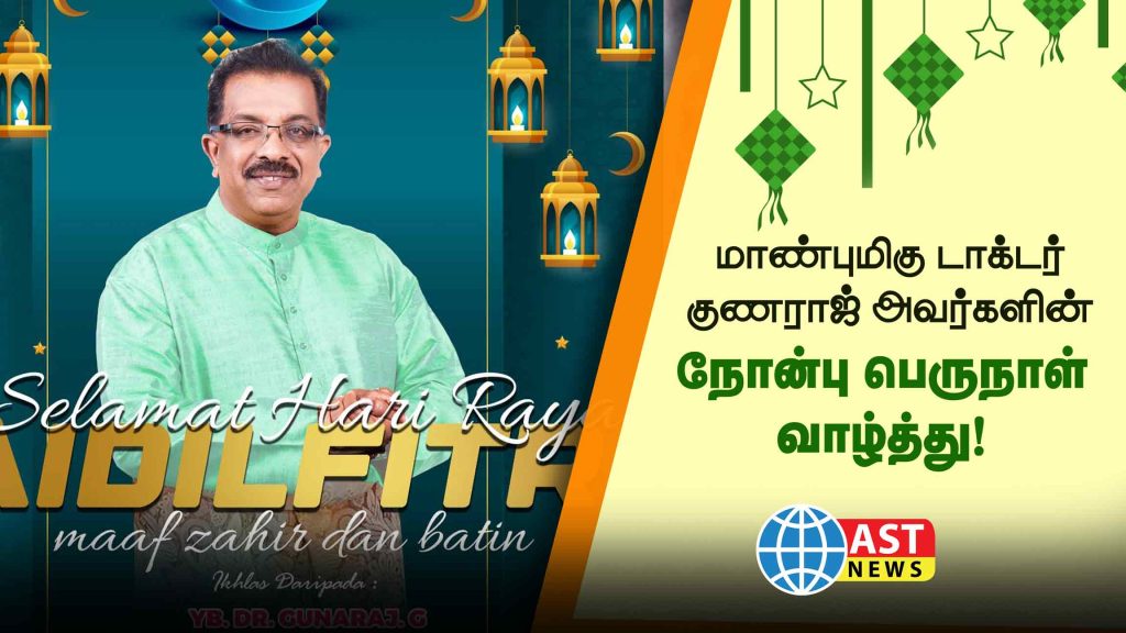 இன்று நோன்பு பெருநாளை கொண்டாடி மகிழும் அனைத்து முஸ்லிம் பெருமக்கள் மற்றும் அன்பர்களுக்கு இனிய நல்வாழ்த்துக்கள் தெரிவித்துக் கொள்வதாக பத்து செந்தோசா சட்டமன்ற உறுப்பினர் மாண்புமிகு டாக்டர் குணராஜ் தமது வாழ்த்து செய்தியில் குறிப்பிட்டுள்ளார்.