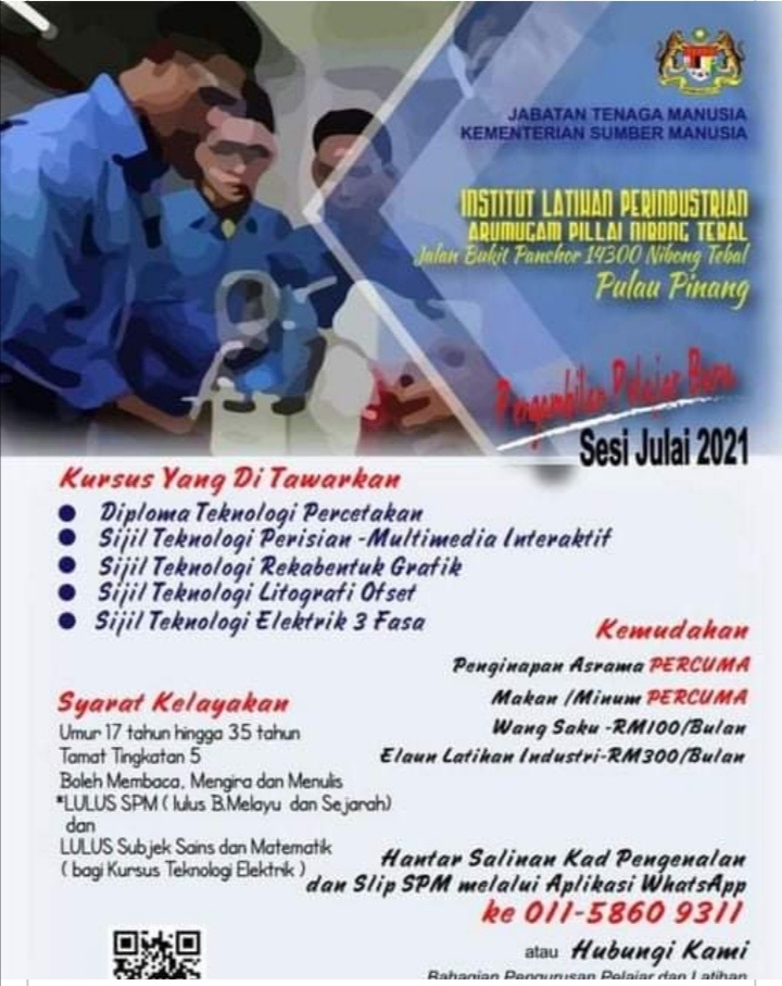 பினாங்கு நிபோங் திபால் ஆறுமுகம் பிள்ளை தொழில் பயிற்சிக் கல்லூரியில் 2021 ஆம் ஆண்டு ஜூலை மாதத்திற்கான புதிய மாணவர் பதிவு தொடங்கியுள்ளது.