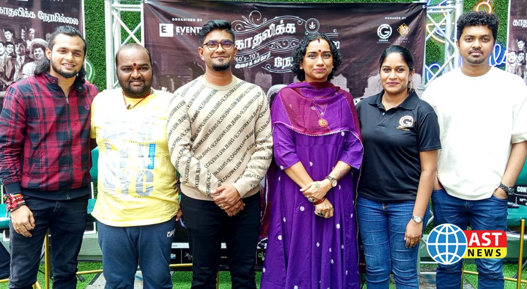 தமிழக தொலைக்காட்சி கலைஞர்களும் மலேசிய கலைஞர்களும் இணைந்து படைக்கும் இன்னிசை நிகழ்ச்சி நாளை சனிக்கிழமை இரவு கே எல் சி சி மண்டபத்தில் 7 மணிக்கு சிறப்பாக நடைபெற உள்ளது. இன்று இதன் பத்திரிக்கையாளர் சந்திப்பு பனானா லீப் ஓயோ மேல் மாடியில் நடைபெற்றது. இதில் தமிழக தொலைக்காட்சி கலைஞர்களும் மலேசிய புகழ்பெற்ற பாடகி காயத்ரி தண்டபாணி மற்றும் பல கலைஞர்களும் கலந்து கொண்டனர். அவர் கூறும் போது இந்த இசை நிகழ்ச்சி பழைய பாடல்களை மையமாக வைத்து தயாரிக்கப்பட்டது. அருமையான பாடல்களை தொகுத்து வழங்க உள்ளார்கள். காதலிக்க நேரமில்லை என்ற தலைப்பில் இந்த இசை நிகழ்ச்சி மிக சிறப்பான முறையில் நடைபெற உள்ளது. இதன் டிக்கெட் பரபரப்பான விற்பனையில் உள்ளது. அதிகமான ரசிகர்கள் எங்களுக்கு ஆதரவு கொடுத்துள்ளனர். அதுபோல அனைவரும் இந்த நிகழ்ச்சிக்கு வந்து கலந்து கொள்ளுமாறு கேட்டுக் கொண்டார்.