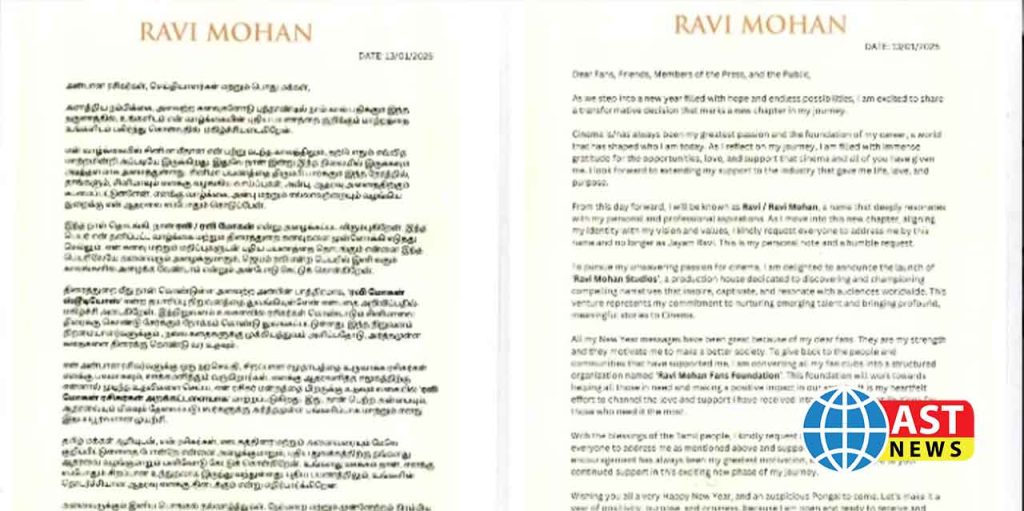 அதோடு, ‘ரவி மோகன் ஸ்டூடியோஸ்’ என்ற புதியத் தயாரிப்பு நிறுவனத்தைத் தொடங்கியிருப்பதாகவும் ரவி அறிவித்தார்.
