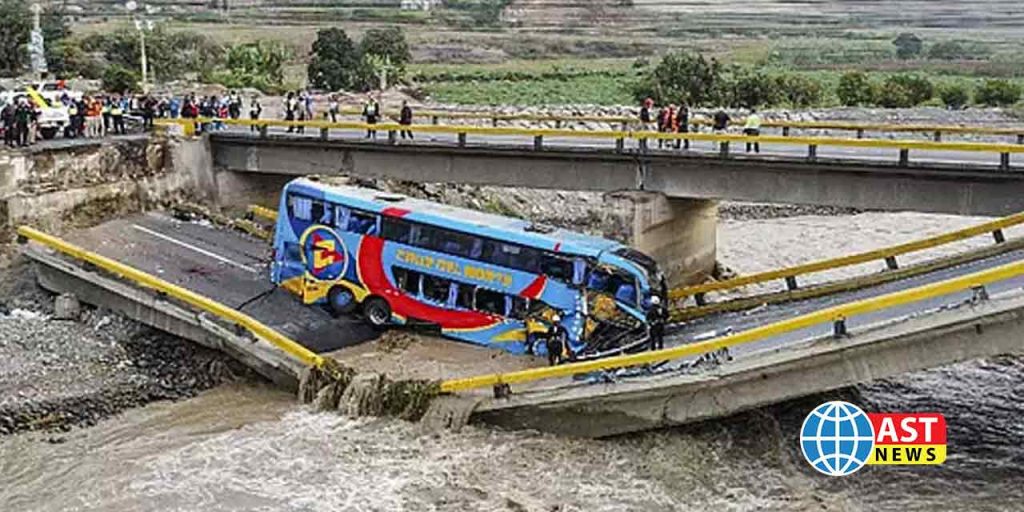 பெரு நாட்டில் பாலம் இடிந்து விழுந்ததில் டபுள் டெக்கர் பேருந்து ஆற்றுக்குள் விழுந்தது. இந்த விபத்தில் 2 பேர் உயிரிழந்தனர். மேலும் 40க்கும் மேற்பட்டோர் காயமடைந்தனர் என்று அதிகாரிகள் தெரிவித்தனர்