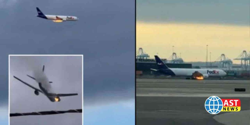 அமெரிக்காவில் பறவை மோதலால் FedEx சரக்கு விமானத்தின் இயந்திரத்தில் தீ பற்றி பெரும் பரபரப்பு ஏற்பட்டது.