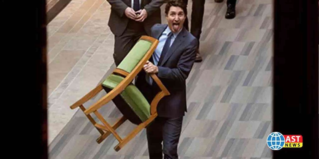 தனது பதவிக்காலம் முடிவடைவதால் தனது அதிருப்தியை வெளிப்படுத்திய ஜஸ்டின் ட்ரூடோ, பாராளுமன்றத்தில் இருந்து தனது நாற்காலியுடன் நாக்கை நீட்டியபடி வெளியேறினார்.