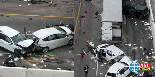 நேற்று முன்தினம் உள்ளூர் நேரப்படி இரவு 11 மணியளவில், ஹோவர்ட் லேன் மற்றும் பார்மர் லேன் இடையே உள்ள சாலையில் 18 சக்கர டிரக் வாகனம் ஒன்று கார்கள் மீது மோதி தள்ளியதால் அவை ஒன்றோடொன்று மோதிக்கொண்டதில் இந்த விபத்து நிகழ்ந்தது. மொத்தம் 17 வாகனங்கள் இந்த விபத்தில் சிக்கின.