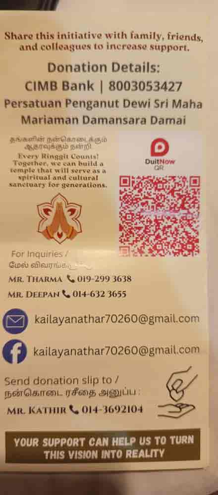 “டாமன் சாரா டாமாய் பகுதியில் எந்தவொரு ஆலயமும் இல்லை. இப்பகுதியில் வசிக்கும் 500க்கும் மேற்பட்ட இந்திய குடும்பங்கள், தங்களின் ஆன்மீக தேவைகளுக்காக வெகு தூரம் செல்ல வேண்டிய சூழ்நிலையில் உள்ளனர்.”