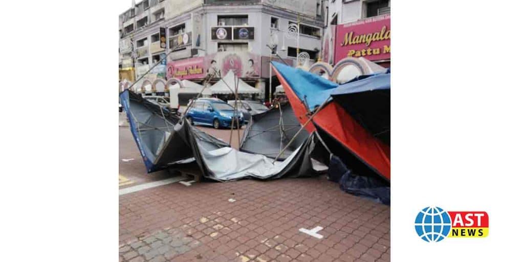 இதனை தொடர்ந்து டிபிகேஎல் அதிகாரிகள் அக்கூடாரங்களை அப்புறப்படுத்தினர் என்பது குறிப்பிடத்தக்கது.