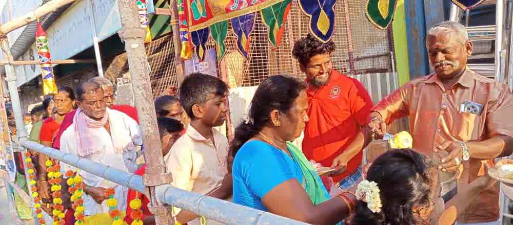மேலும், நமச்சிவாயா ஏஜென்ஸ் உரிமையாளர் தேரி பாண்டியன், இந்த நிகழ்வை முன்னிட்டு பக்தர்களுக்கு அன்னதானம் வழங்கினார். இதில் ஆயிரத்திற்கும் மேற்பட்டோர் கலந்து கொண்டு அன்னதானம் பெற்றனர்.