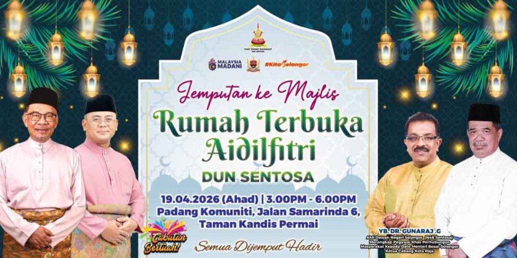 செந்தோசா சட்டமன்ற உறுப்பினர் மாண்புமிகு டாக்டர் குணராஜ் ஜோர்ஜ் சார்பில், ஹரி ராயா பெருநாள் விழா வரும் ஏப்ரல் 19, 2026 (ஞாயிற்றுக்கிழமை) அன்று பிரமாண்டமாக நடைபெற உள்ளது.