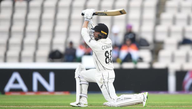 கான்வே 54 ரன்கள் எடுத்திருந்த போது இஷாந்த் சர்மாவிடம் அவுட்டானார். அதன்பின் போதிய வெளிச்சமின்மையால் ஆட்டம் முடித்துக் கொள்ளப்பட்டது.