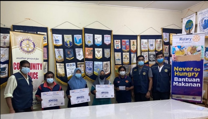 துன்பப்படும் நேரத்தில் கூட யாரும் உண்ண உணவின்றி தவிக்கக் கூடாது என்ற உன்னத நோக்கத்தோடு பேரா கிரியான் ரோட்டரி கிளப் வசதிக் குறைந்த குடும்பங்களுக்கு மனிதாபிமான உதவிக்கரம் நீட்டியது.தென் செபராங் பிறை மாவட்டத்திலுள்ள நிபோங் திபால்,ஜாவி கிரியான் மாவட்டத்தின் பாகான் செராய் மற்றும் பாரிட் புந்தார் ஆகிய இடங்களில் வசிக்கும் வசதிக் குறைந்த 220 குடும்பங்களுக்கு தலா 100 வெள்ளிக்கான பற்றுசீட்டு வழங்கப்பட்டது.