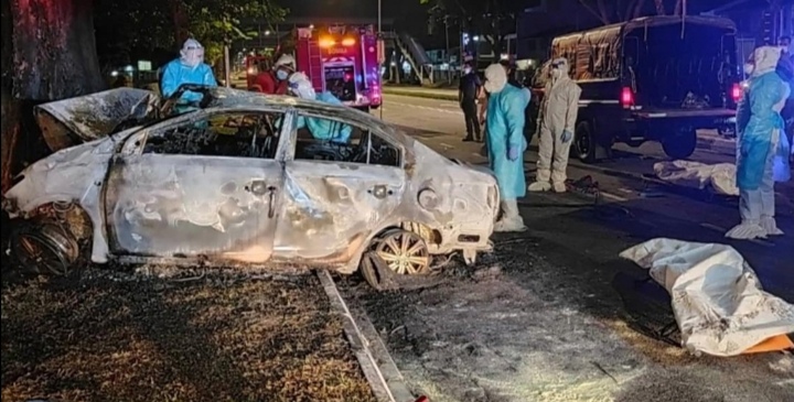 விபத்துக்குள்ளான அந்த காரில் சிக்கி கருகிய நிலையில் கிடந்த இரு ஆண்கள் மற்றும் ஒரு பெண்ணின் உடலை மீட்டதாக ஜாலான் பேரா தீயணைப்பு மற்றும் மீட்புப் படையின் தலைவர் ஸாரி மன்சோர் கூறினார். இறந்தவர்களின் அடையாளங்கள் உடனடியாக தெரியவில்லை. உடல்கூறு சோதனைக்காக சடலங்கள் பினாங்கு