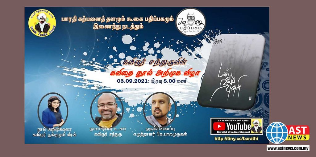 கவிஞர் சந்துருவை அனைவருக்கும் ஓவியராகத்தான் அறிமுகம். மலேசிய நவீனத் தமிழிலக்கியத்தின் குறிப்பாக இலக்கிய சிற்றிதழ்களில் இருக்கும் ஓவியங்கள் பல சந்துருவினால் உருவானவை. ஓவியனாக அறியப்பட்ட சந்துருவின் முதல் கவிதை நூல் வரும் 05.09.2021ஆம் நாளில் இரவு 8.00 மணிக்குப் பாரதி கற்பனைத் தளத்தின் நேரலையில் வெளியீடு காணவுள்ளது.