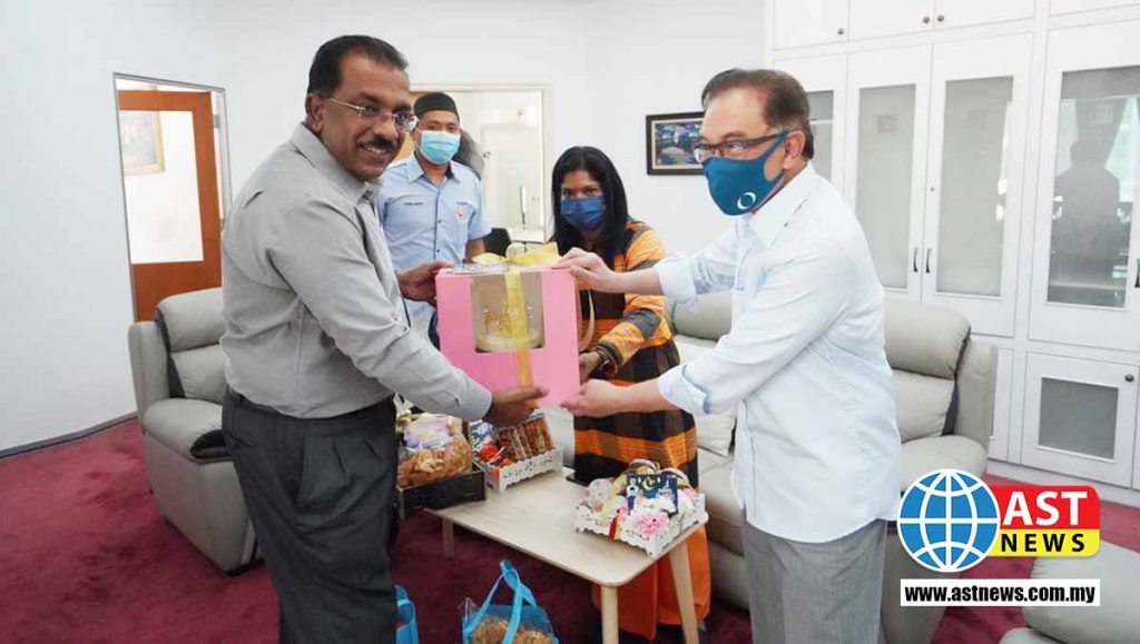 டத்தோ ஸ்ரீ அன்வார் அவர்களை அவரது அலுவலகத்தில் நேரில் சந்தித்த டாக்டர் குண ராஜ் நோன்பு பெருநாள் வாழ்த்துக்களை தெரிவித்து தமது மகிழ்ச்சியையும் பகிர்ந்து கொண்டார்.