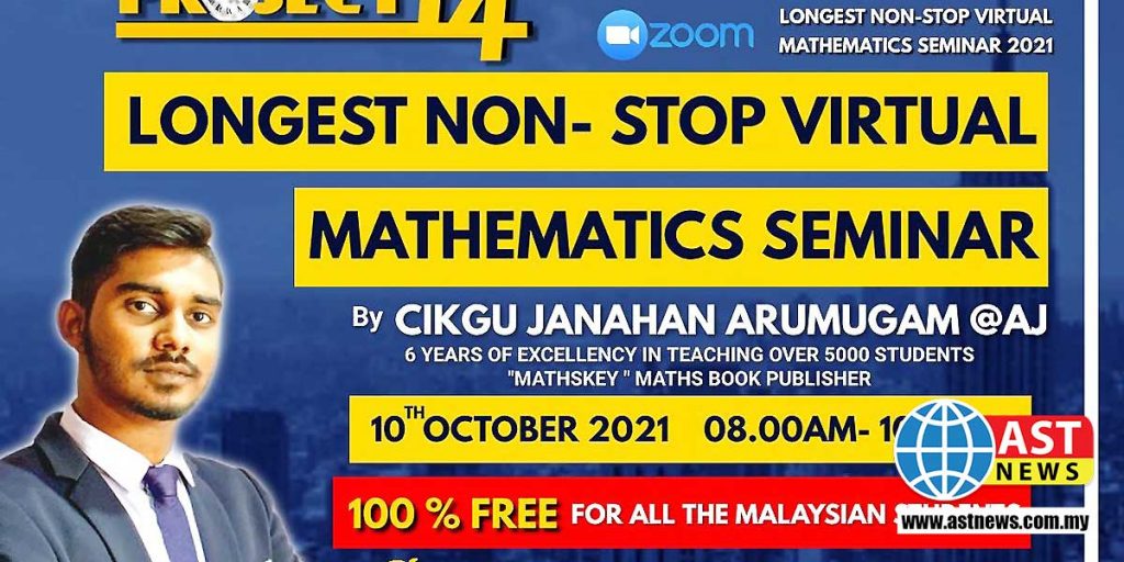 E-Tuisyen Arena Matriks ஏற்பாட்டில் இணையம் வழி இடைவெளி இல்லாத 14 மணி கணித பட்டறை வரும் அக்டோபர் 10ஆம் தேதி நடைபெறுகிறது. மலேசிய சாதனைப் புத்தகத்தில் இடம் பெறும் வகையில் நடைபெறும் இந்த 14 மணி நேர கணித பட்டறையில் ஆயிரம் மாணவர்கள் பங்கேற்கிறார்கள் என்று ஆசிரியர் ஜனகன் ஆறுமுகம் ஏஎஸ்டி செய்தி நிறுவனத்திடம் தெரிவித்தார். படிவம் 1 முதல் படிவம் 5 வரைக்குமான இந்திய மாணவர்கள் இதில் இலவசமாக பங்கேற்க வாய்ப்பு வழங்கப்படுகிறது. கணிதப் பாடத்தில் இந்திய மாணவர்கள் சிறந்து விளங்குவதற்காக இலவசமாக ஏற்பாடு செய்யப்பட்டிருக்கும் இந்த கணித பட்டறையில் பங்கேற்க விரும்பும் மாணவர்கள் 010 255 1434 என்ற எண்ணில் தொடர்பு கொள்ளலாம் என்று அவர் கேட்டுக் கொண்டார்.